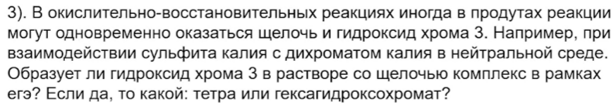 18. Комплекс образуется только в избытке щёлочи. Но если в продуктах записать комплекс (тетра- или гекса-), ответ также будет считаться верным.