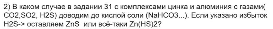 23. ZnS оставляем. С избытком углекислого газа будет кислая соль: