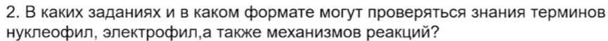 30. Про механизмы реакций лучше детям рассказывать. Термины нуклеофил и электрофил на ЕГЭ не встретятся. Могут встретиться вопросы о механизме, например, радикальный или ионный.