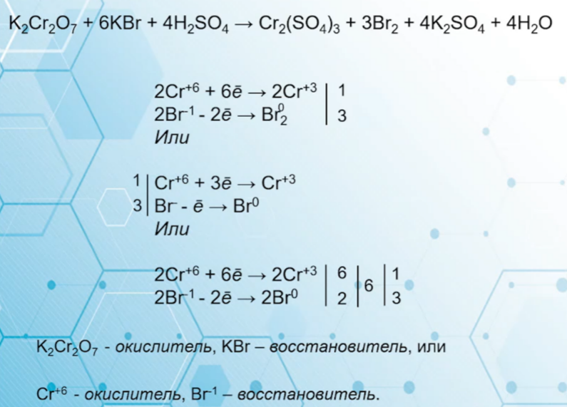 2. Наименьшее общее кратное в электронном балансе писать необязательно. Если в реакции участвует простое вещество, например Br2, в электронном балансе можно написать один атом.