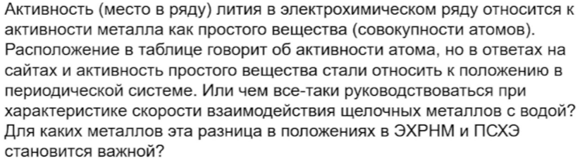 33. У лития аномальное расположение в электрохимическом ряду из-за высокой энергии гидратации. Когда мы сравниваем активность щелочных и щелочно-земельных металлов, то ориентироваться нужно на их положение в периодической таблице.