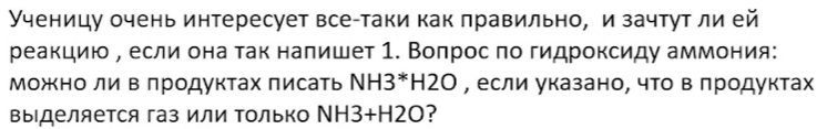 52. Гидрат аммиака - это не газ, поэтому NH3·H2O писать нельзя, если сказано, что выделяется газ. В этом случае нужно писать NH3 + H2O.