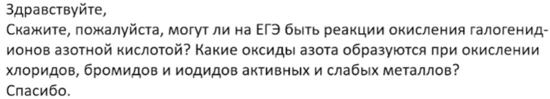 60. Хлориды вряд ли окисляются азотной кислотой. В реакции бромидов и йодидов с концентрированной азотной кислотой образуется NO2.