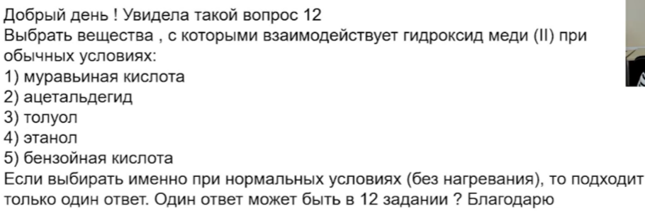 20. Cu(OH)2 реагирует с муравьиной и бензойной кислотами при обычных условиях: