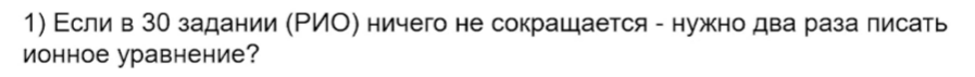 4. При оформлении задания 30 цифру 1 в зарядах ионов писать не нужно.