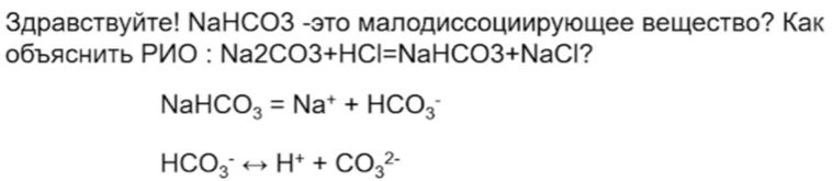 34. По первой ступени NaHCO3 - сильный электролит, так как диссоциирует практически нацело. Сам гидрокарбонат-ион - это малодиссоциирующее вещество. Такое задание в ЕГЭ не встретится.