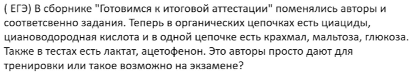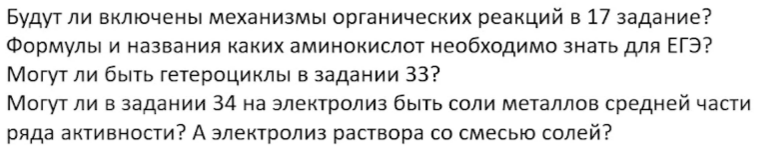В апреле 2025 года разработчиками КИМ ЕГЭ был проведен очередной вебинар "Организация подготовки учащихся к Государственной итоговой аттестации по химии", который был полностью посвящен ответам на вопросы. Основные вопросы и краткие ответы, которые обсуждались на данном вебинаре, представлены на этой странице.